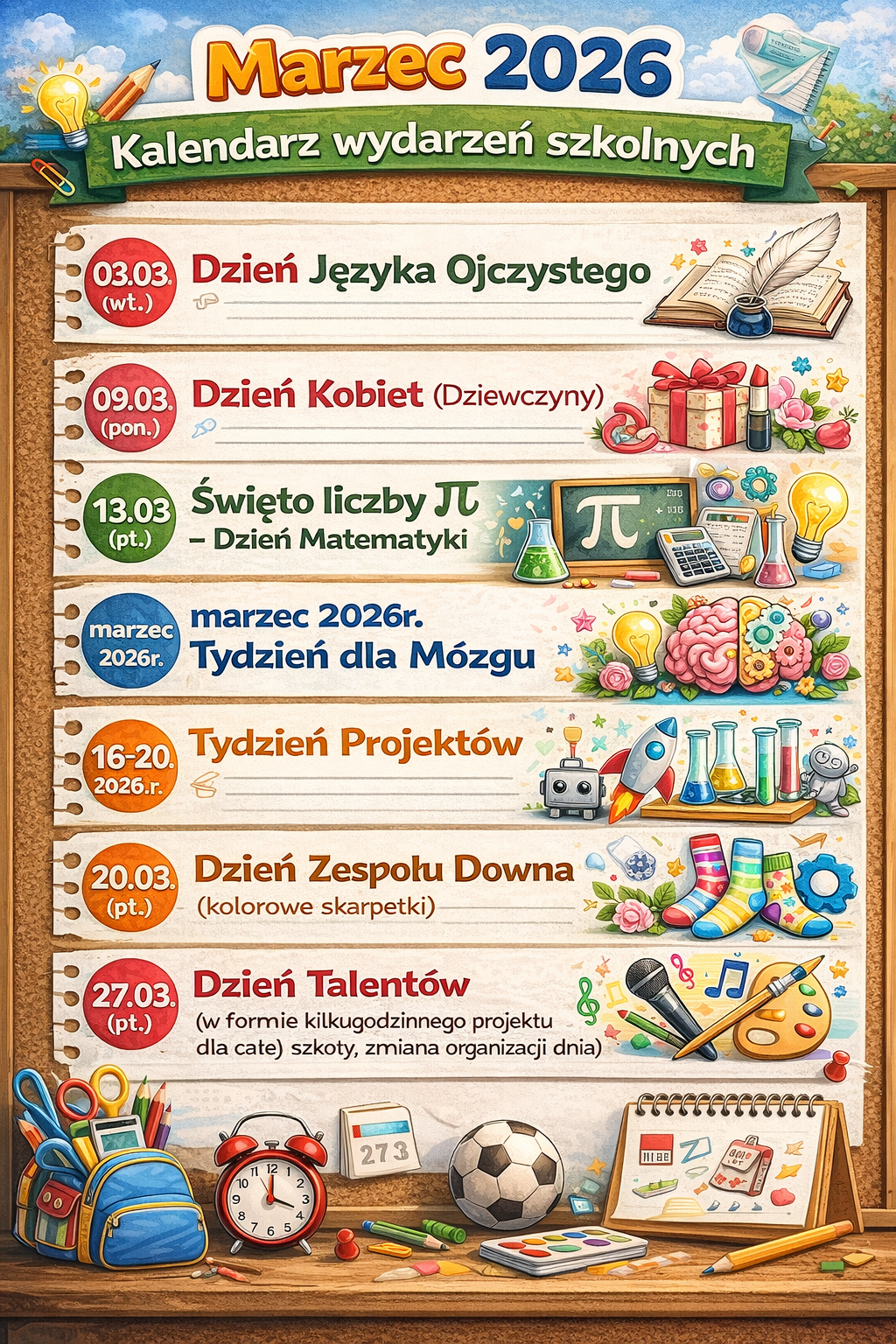 Kalendarz Imprez Szkolnych - Marzec 2026